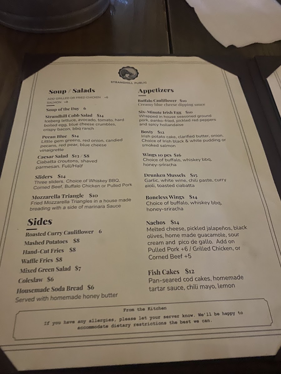 Strandhill Public Menu