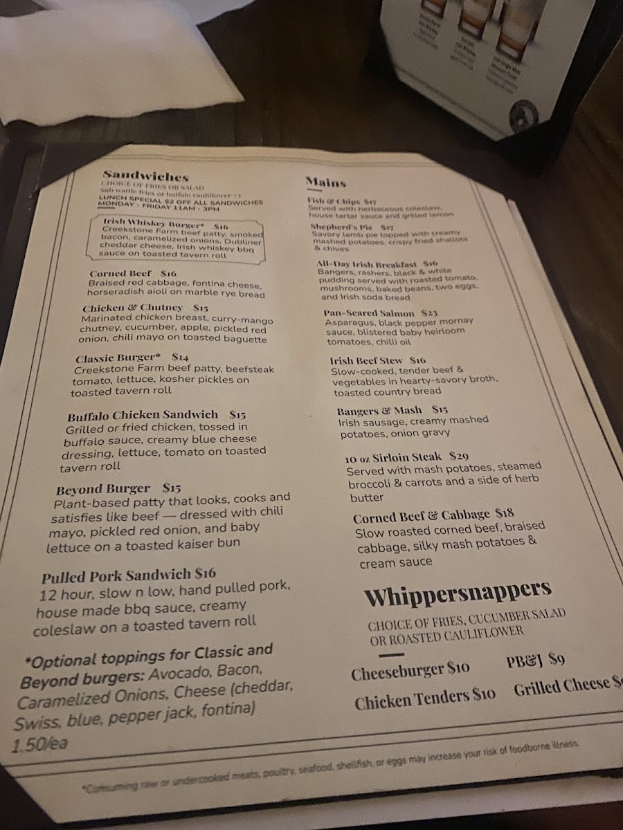 The menu offers a diverse range of dishes, from the classic shepherd's pie to seasonal rotating cocktails that keep the experience fresh and exciting. Patrons rave about the quality and flavor of the food, with many noting the warmth and friendliness of the staff, who are well-versed in the offerings.